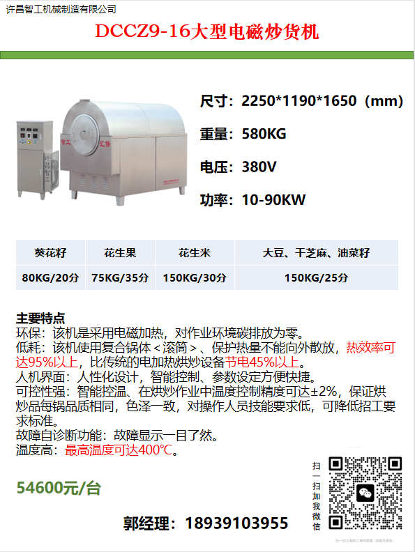 許昌智工電磁炒貨機(jī)全國咨詢、訂購聯(lián)系電話:18939103955郭經(jīng)理(微信同號)