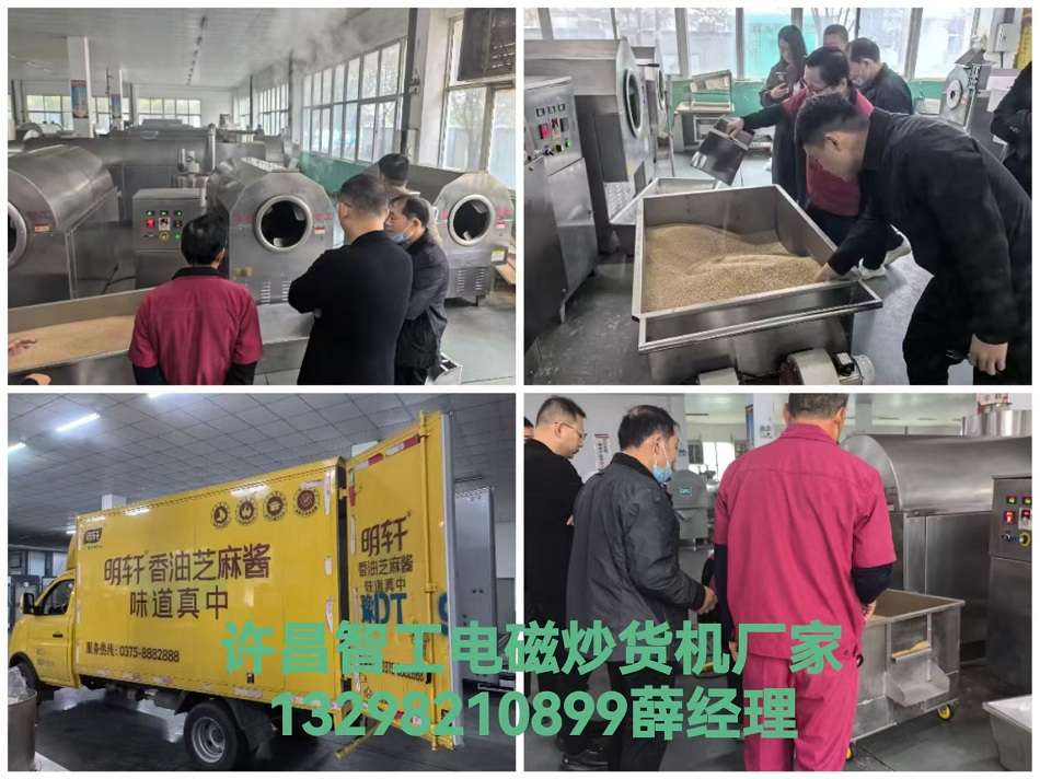 10月12日,河南平頂山明軒小磨香油廠來廠考察200斤炒芝麻鍋。炒制的芝麻鼓肚飽滿。